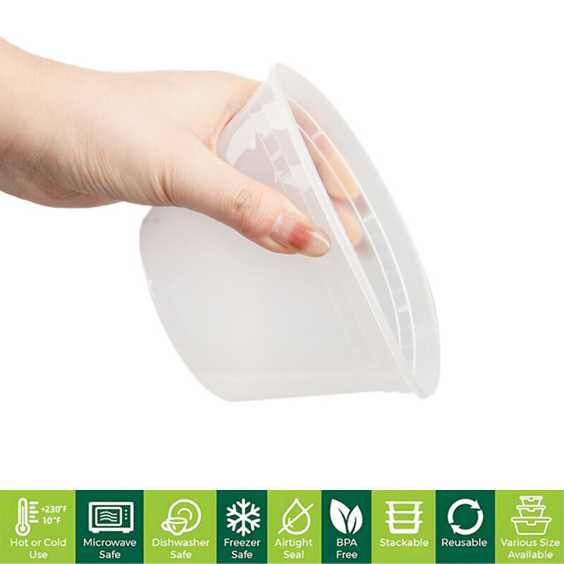 Our containers primarily use Polypropylene (PP), a food-safe, non-toxic plastic known for its high heat resistance (microwave-safe) and durability. It is ideal for both hot and cold foods, ensuring safety and longevity while reducing environmental impact through recyclability.